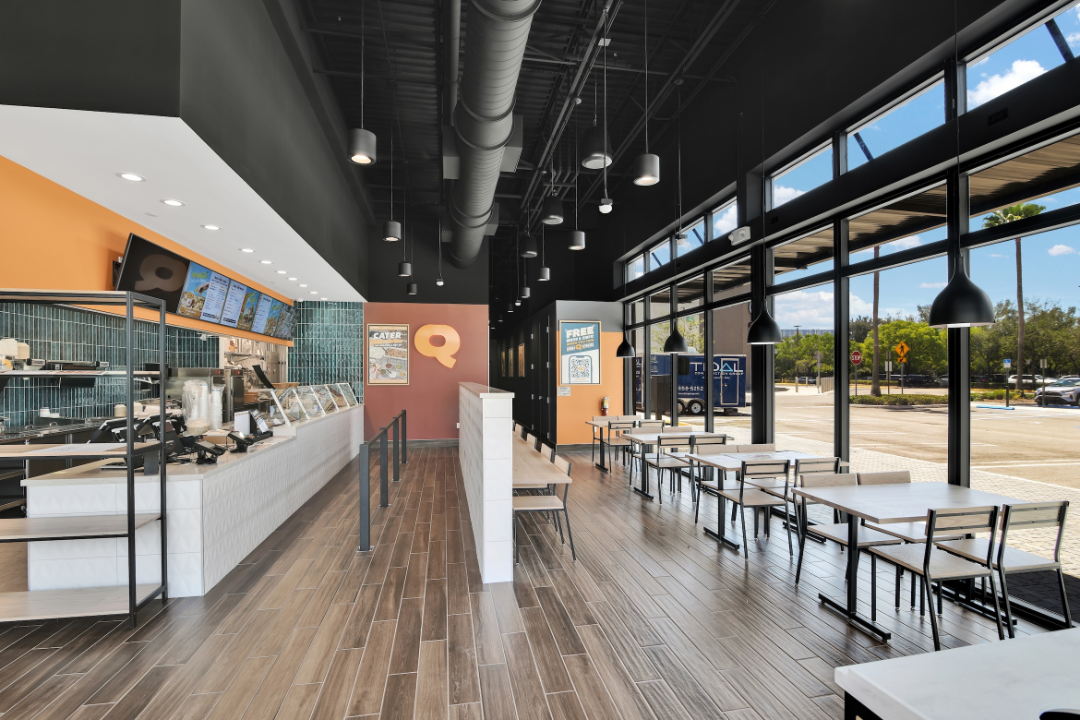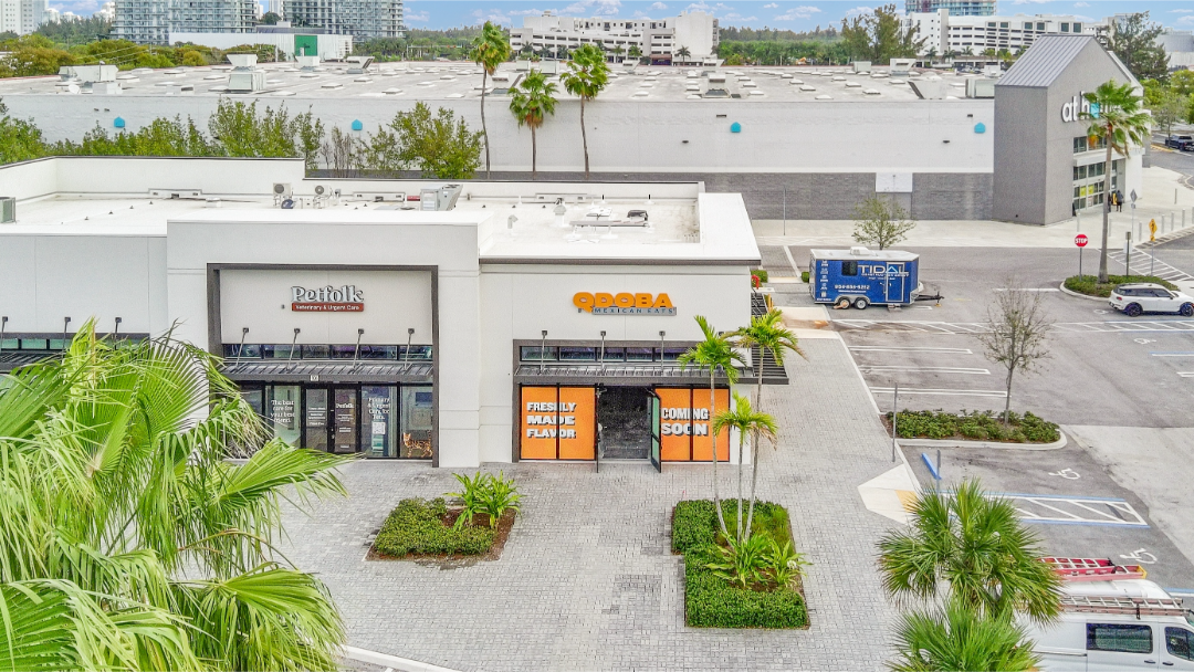 Qdoba, a Mexican-inspired restaurant, and this new location is being built in a modern retail plaza in North Miami Beach, offering a fresh and vibrant dining experience.